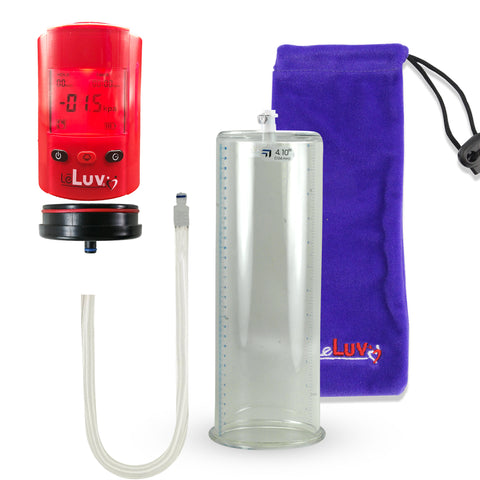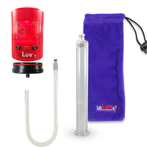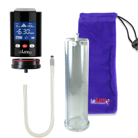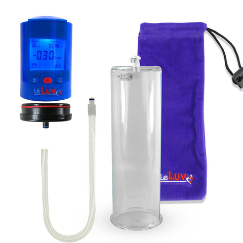 LeLuv iPump Smart LCD Adult Penis Pump Kit, Black with Clear Hose, Adapter, Fitting - 9" or 12" x 1.35-5.00 Cylinder