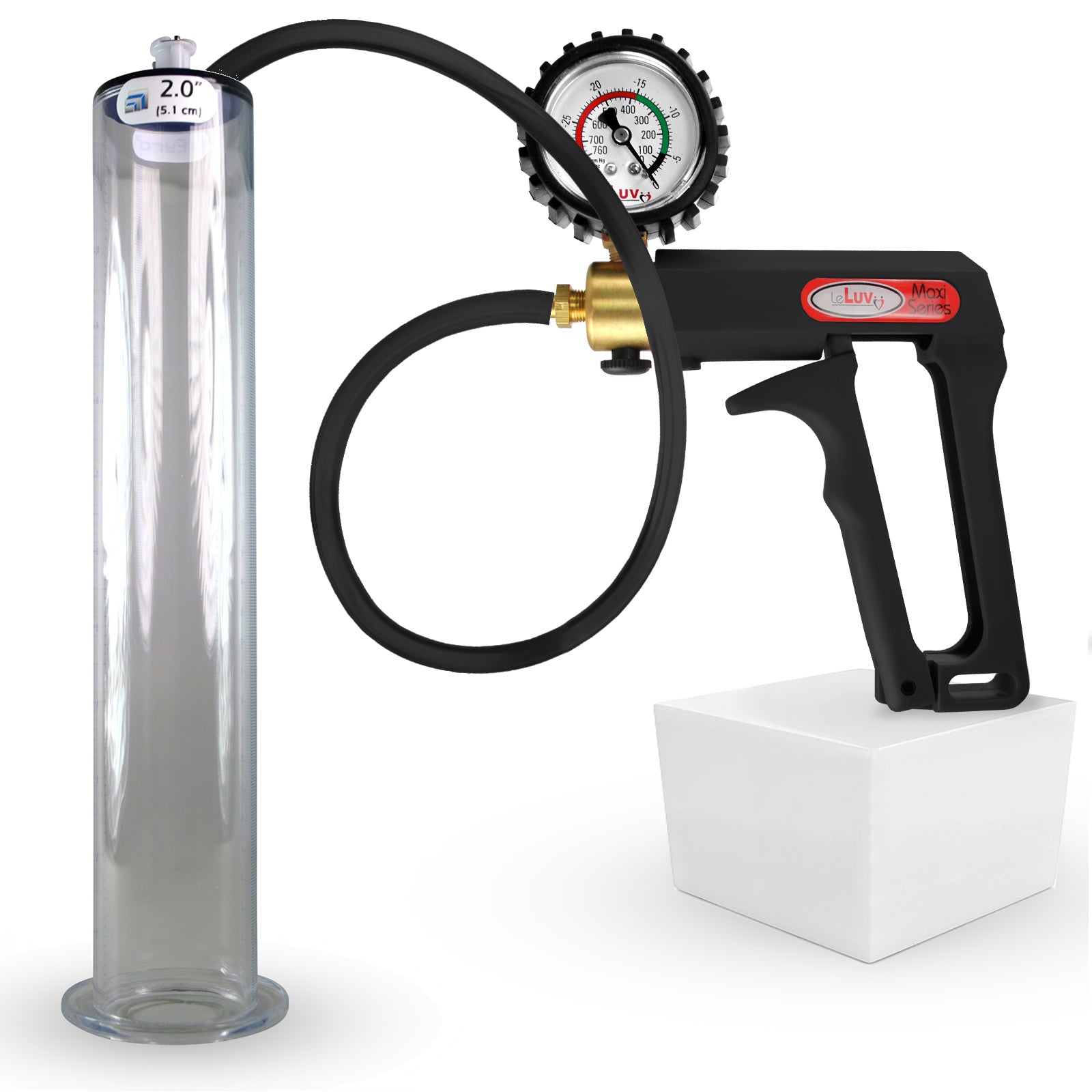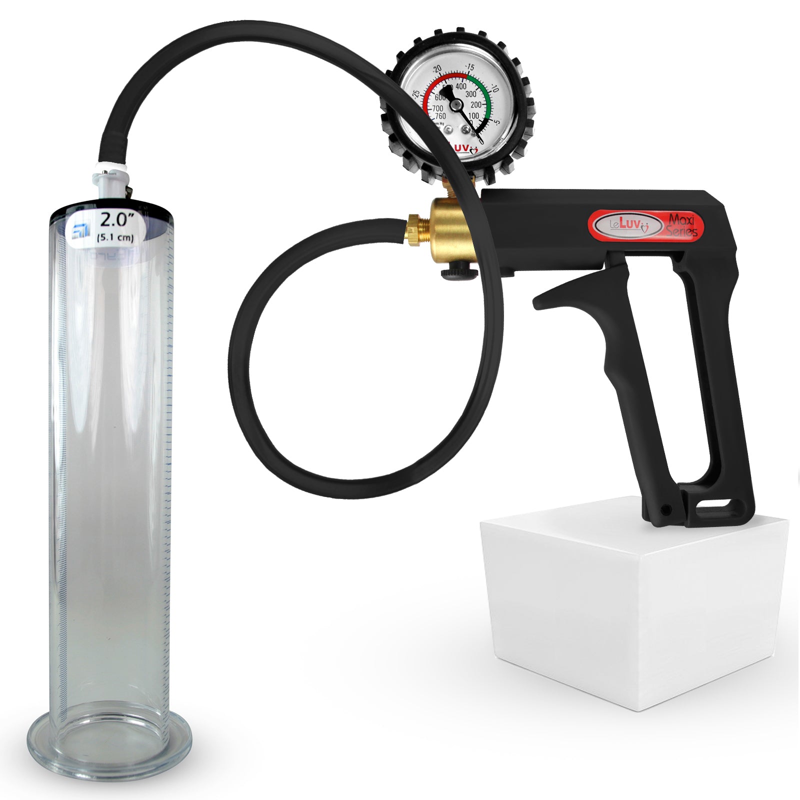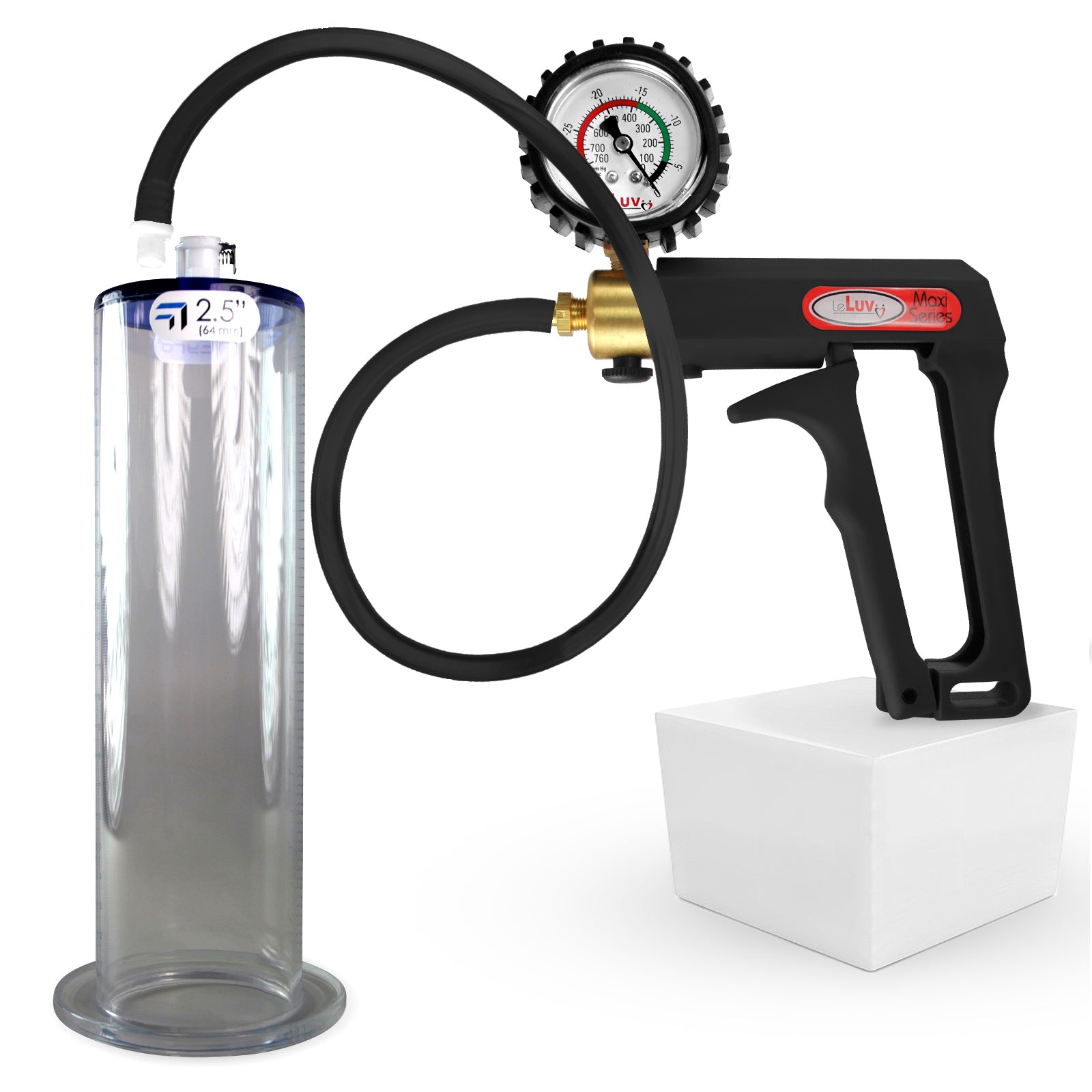 LeLuv Maxi Penis Pump | Black Handle, Silicone Hose, All Gauge Options | WIDE FLANGE Cylinder